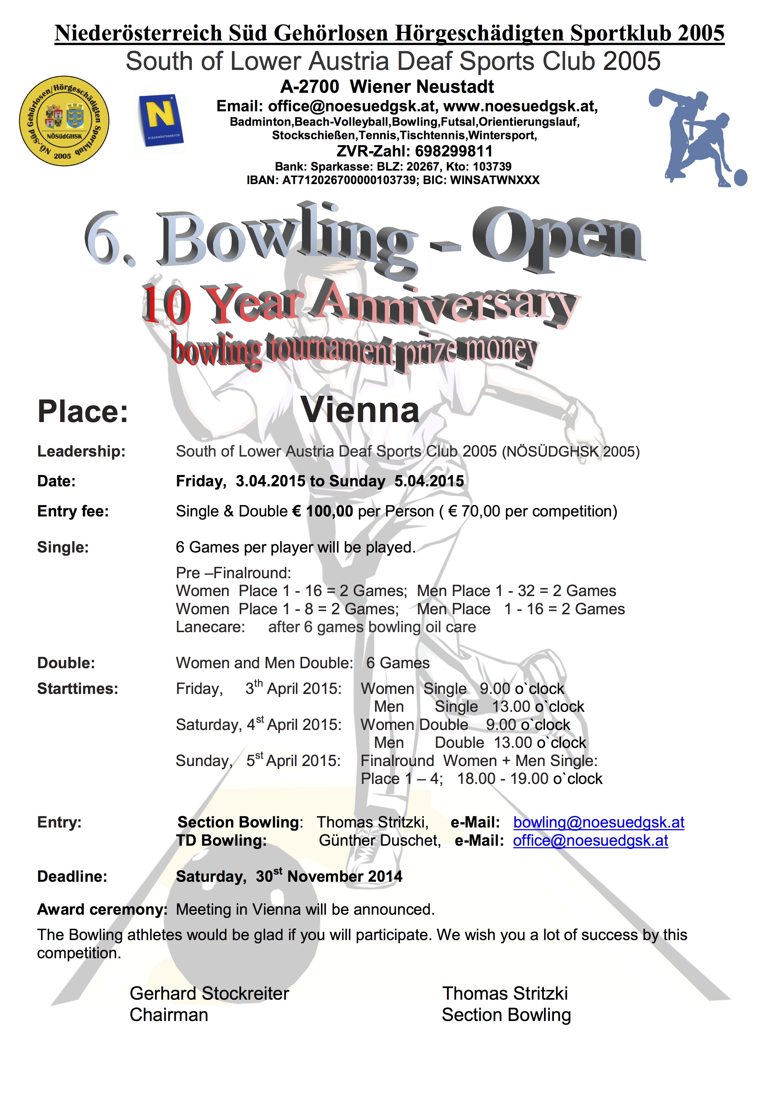 6th Bowling – Open 10 Year Anniversary bowling tournament prize money